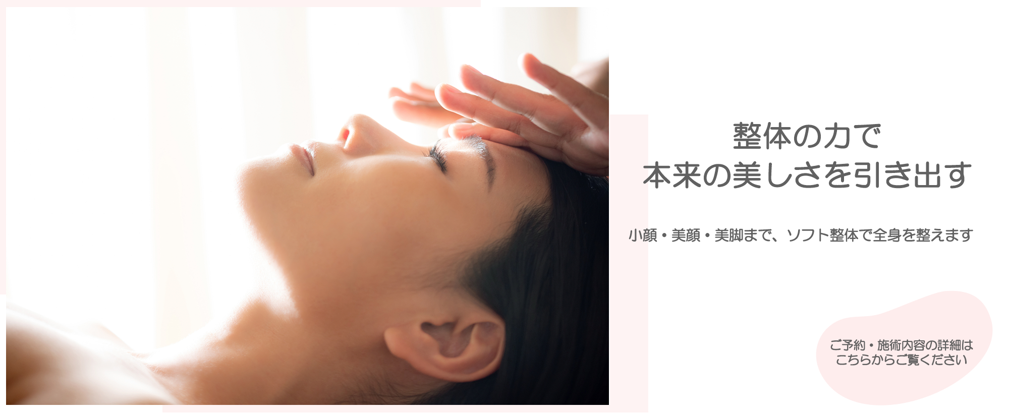 より美しく輝きたいあなたへ!人の体を知り尽くした、整体院ならではの美容整体技術。